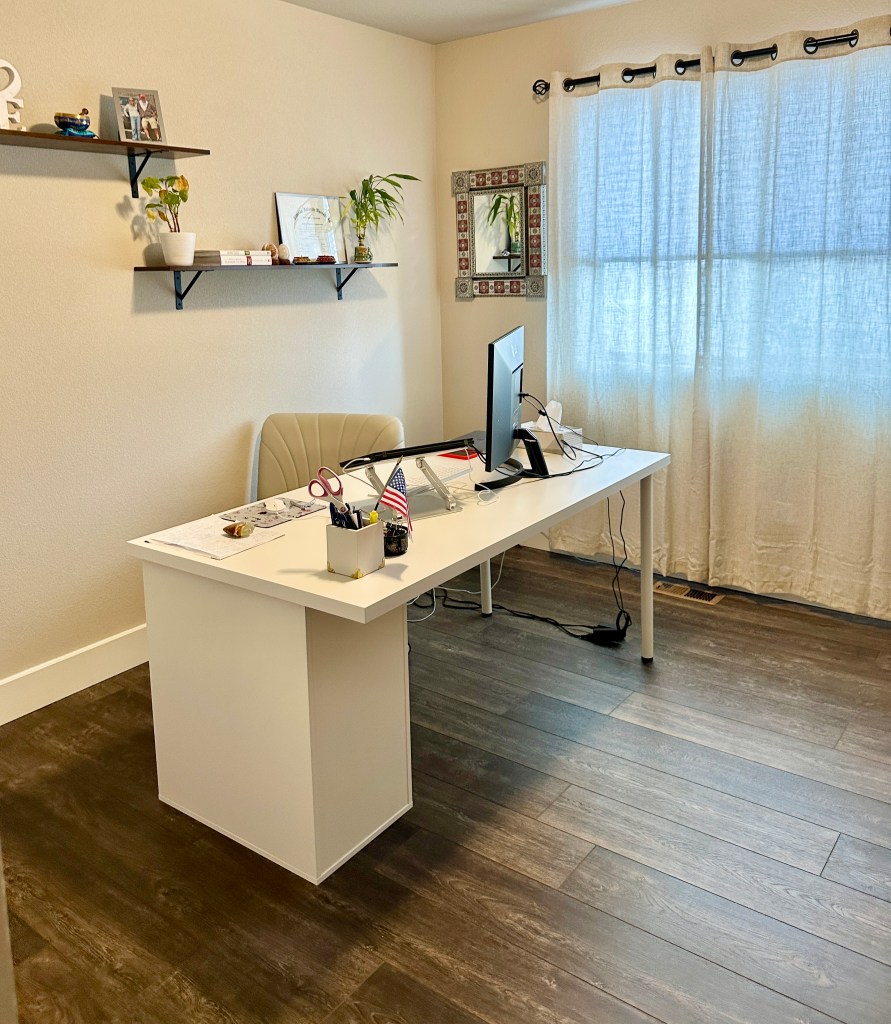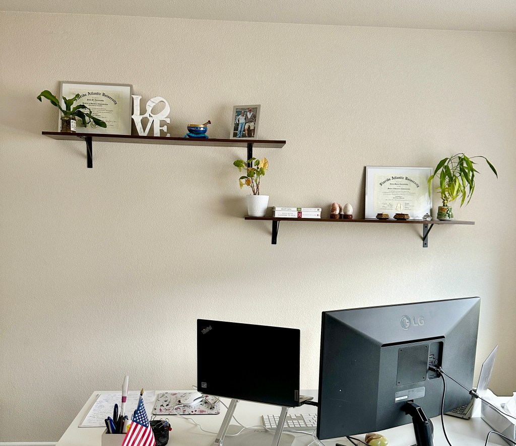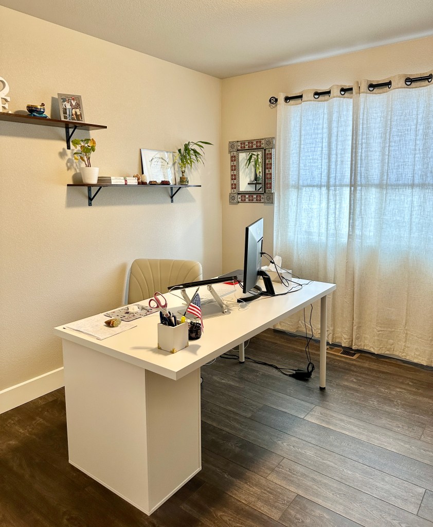 Your workspace should reflect your personality and spark joy. Consider painting the walls a color that energizes or calms you. Hang art, shelves, add a plant, or display a favorite quote. Even small design touches can help you feel more motivated and at home in your space.